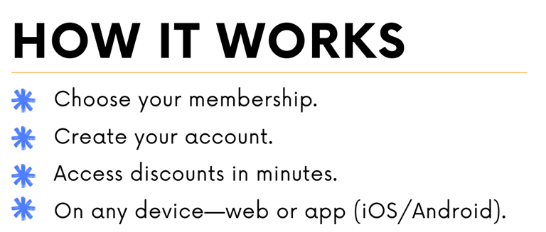 You will receive a welcome email with your membership code and instructions to log into the web platform or app, where you can browse and redeem your benefits easily.